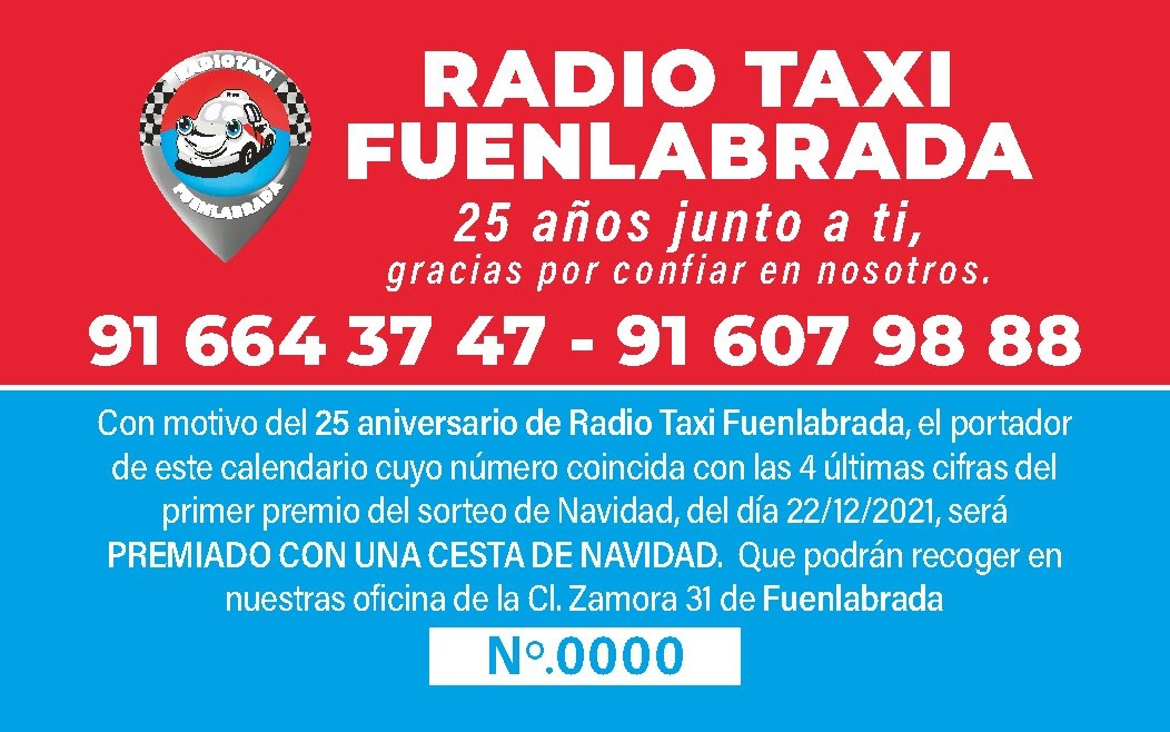 Con motivo del 25 aniversario de Radio Taxi Fuenlabrada hemos organizado un sorteo de una cesta de navidad, como...